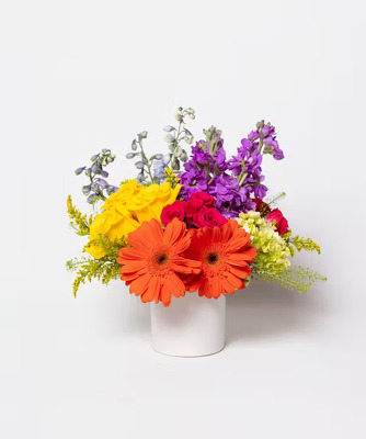 Bold, playful, and full of life—Vibrance is a burst of color that instantly lifts the mood. With its joyful mix of vivid hues and cheerful blooms, this arrangement brings energy and fun to any room. Perfect for celebrations, a thank-you, or just because, Vibrance is a beautiful reminder to embrace the brighter side of life.
